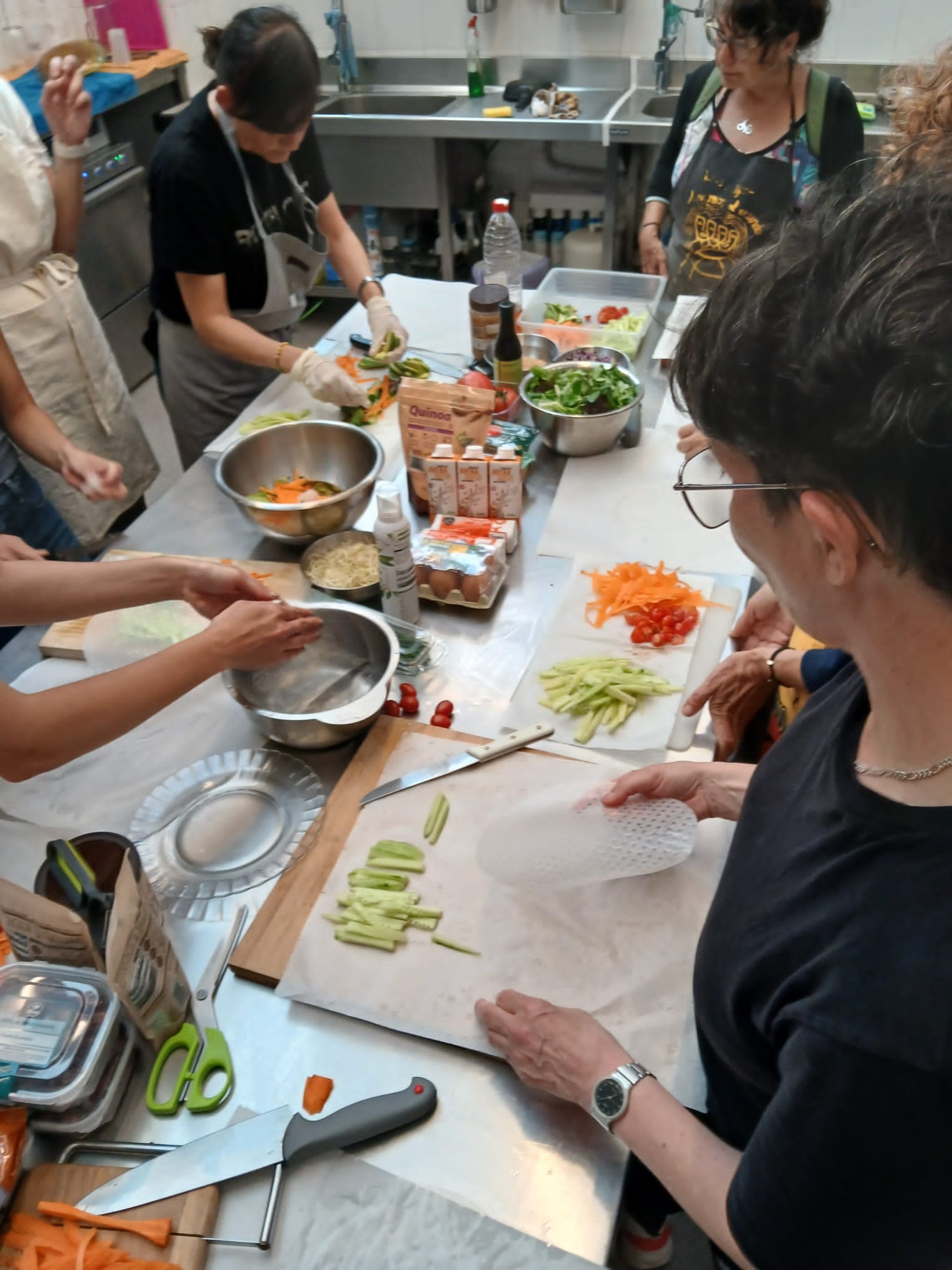 Rollitos vietnamitas con salsa de cacahuetes, Crepes de quinoa con queso de cabra tomate rosa y brotes de cebolla, Trufas veganas GF